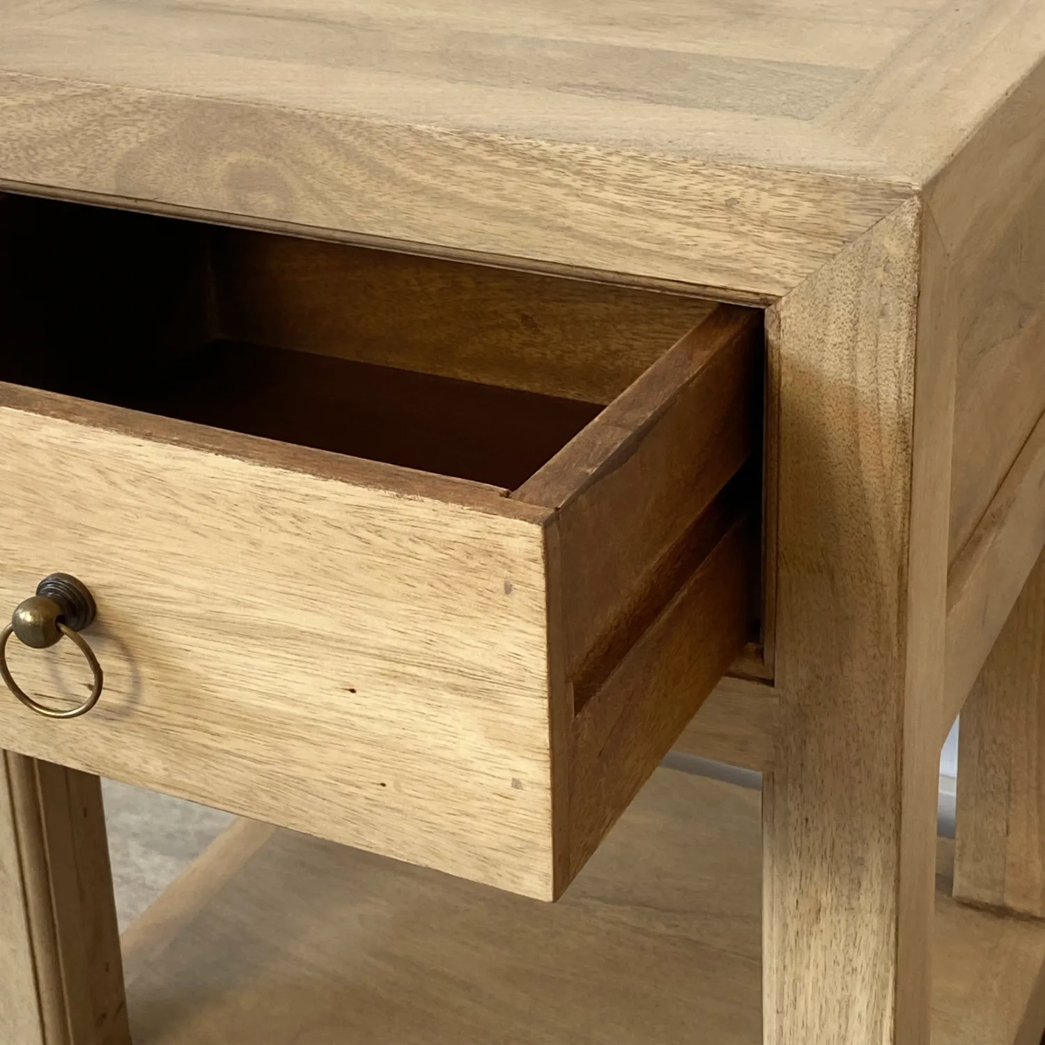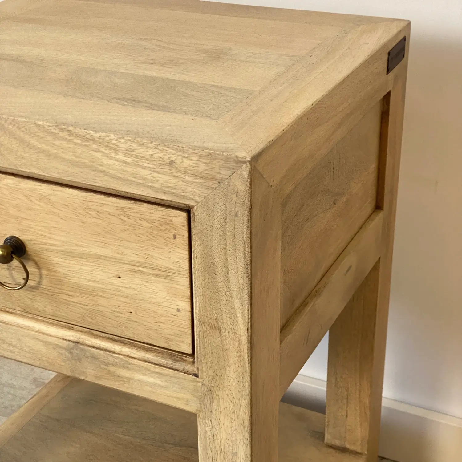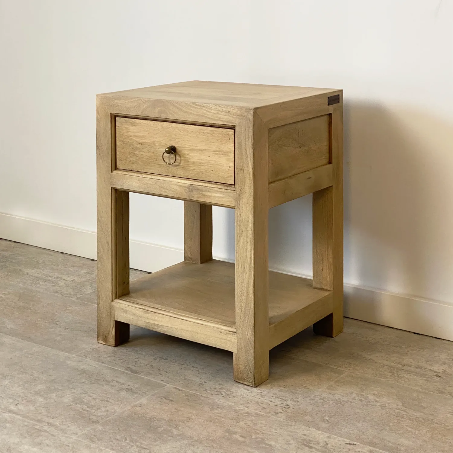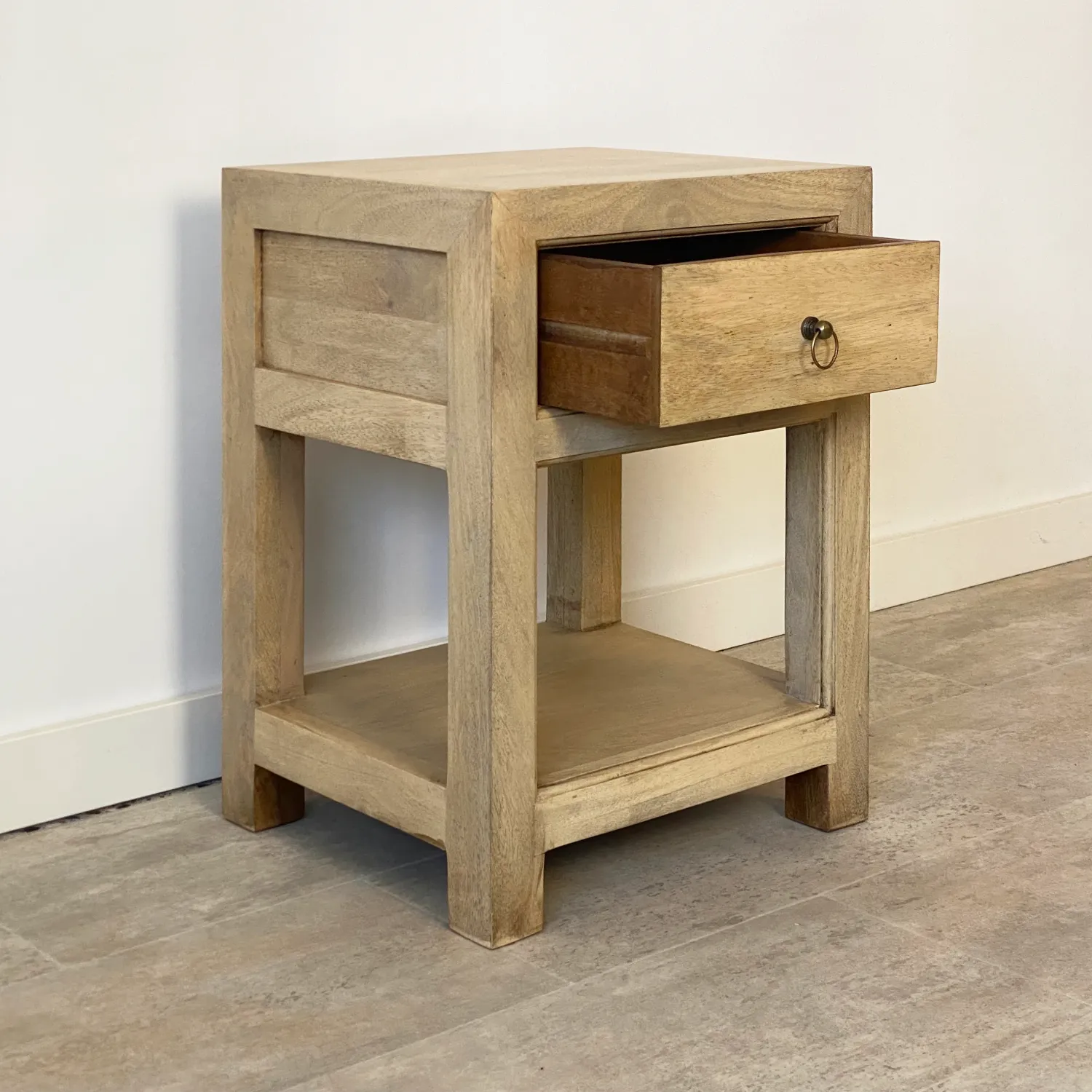 La mesita de noche con 1 cajón de la colección RUSTIC está realizada en madera de mango certificada. De líneas rectas y diseño atemporal.